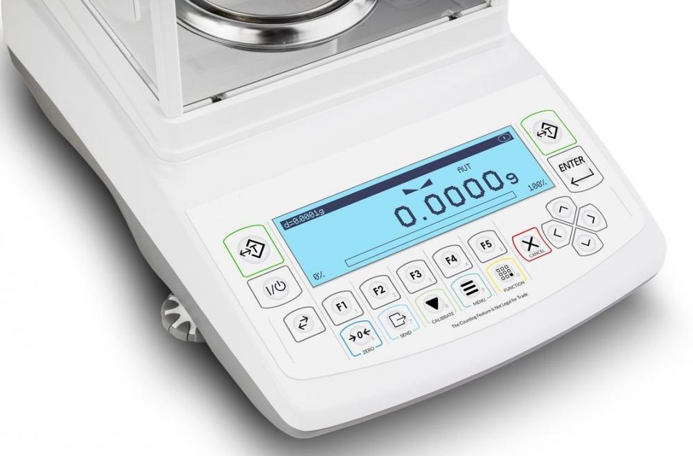 Přesnost - dílek (d): 0,1 mg, Interní kalibrace, Třída přesnosti: I.