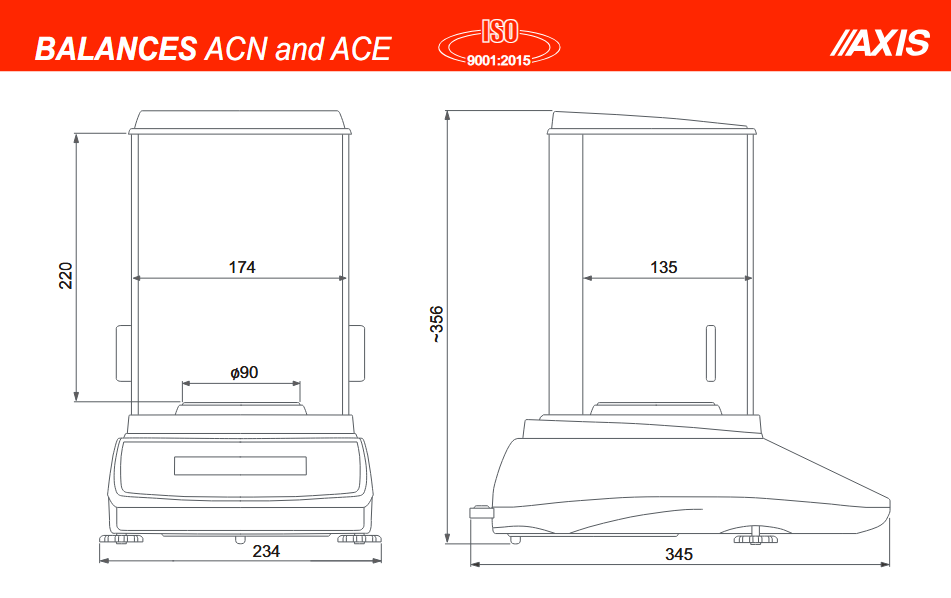 Profesionální váhy řady ACN jsou vybaveny rozhraním RS232C (připojení ke čtečce čárových kódů nebo tiskárně), USB-B (počítač) a USB-A (flash disk, tiskárna nebo klávesnice počítače). Váhy mají velký LCD displej (velikost číslic 18 mm), standardní klávesnici a mnoho speciálních funkcí. Prostorná vážicí komora uzavřená posuvnými panely ze tří stran umožňuje pohodlnou a efektivní práci v místnostech, kde není možné vyloučit proudění vzduchu. Paměť Alibi zajišťuje bezpečnost a archivaci měření (až 100 000). Naměřené hodnoty lze z váhy stáhnout do počítače a zobrazit je na počítači.