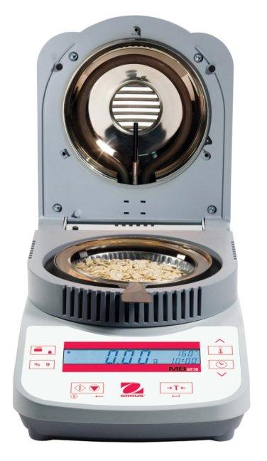Funkce: vážení, rozsah sušící teploty od 50 °C do 160 °C s 5 °C krokem, opakovatelnost 0,05 % (10 g vzorku)