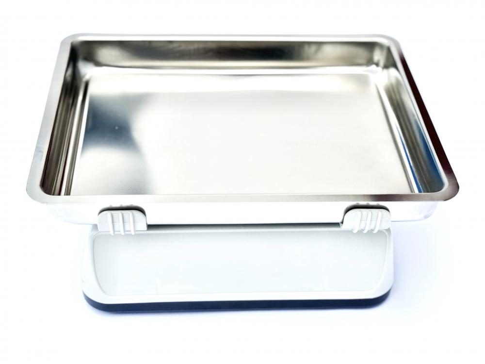 Gastronomická váha s nerezovou vaničkou poskytuje velice přesné výsledky vážení, které můžete odečítat na LCD displeji. Je koncipována pro zátěž do 3/6 kg a má přesnost 1/2 g. Váha je již úředně ověřená od výrobce (cejchovaná), takže je vhodná pro gastronomické použití a můžete ji okamžitě začít používat. Platnost ověření je dva roky. Pro rychlé a jednoznačné získání výsledků měření je váha vybavena čtyřmístným LCD displejem. Díky podsvícení zajišťuje displej pohodlnou práci i na tmavých místech. I z nepříznivého úhlu jsou 28 mm vysoké číslice jasně viditelné. Přehledně uspořádaný ovládací panel se lze jednoduše obsluhovat. Pomocí pěti tlačítek můžete volit a regulovat všechny požadované základní funkce: Provoz, podsvícení displeje, tárování, nulování. Váha poskytuje neomezený počet tárování při navažování surovin až do maximální váživosti. Kromě toho je klávesnice s fólií odolná proti vodě a mastnotě. Díky stabilním gumovým nožičkám stojí váha vždy stabilně a bezpečně. Výšku nožiček lze upravit, tím můžete optimálně váhu vyrovnat na nerovném povrchu. Navíc pogumované nožičky chrání pracovní plochu před poškrábáním. Pro zajištění dlouhého provozu byla váha vybavena zabudovaným akumulátorem 6V 4,5Ah. Ten umožňuje mobilní provoz po dobu až 100 hodin. I při nabíjení můžete váhu bez problémů používat. Váha má úsporný režim, který chrání baterii a šetří energii. Při koncepci kontrolní stolní váhy byl kladen velký důraz na kompaktní design. Malé rozměry a nízká hmotnost tohoto přístroje umožňují snadné skladování a snadnou přepravu. Skelet váhy je vyroben z odolného plastu.