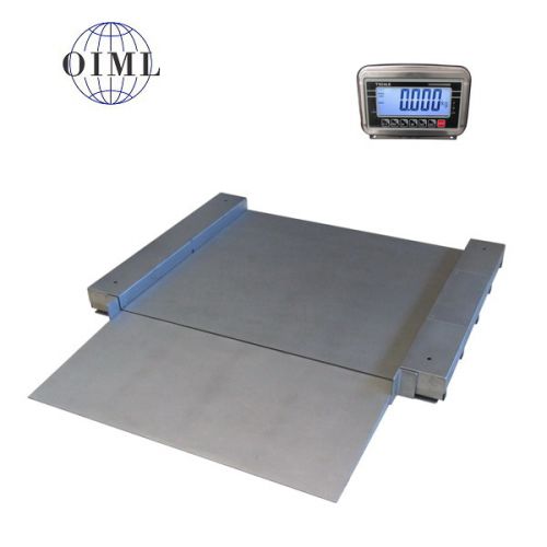 Podlahová nerezová nájezdová váha do 1500kg o rozměru vážní plochy 800x800mm.
