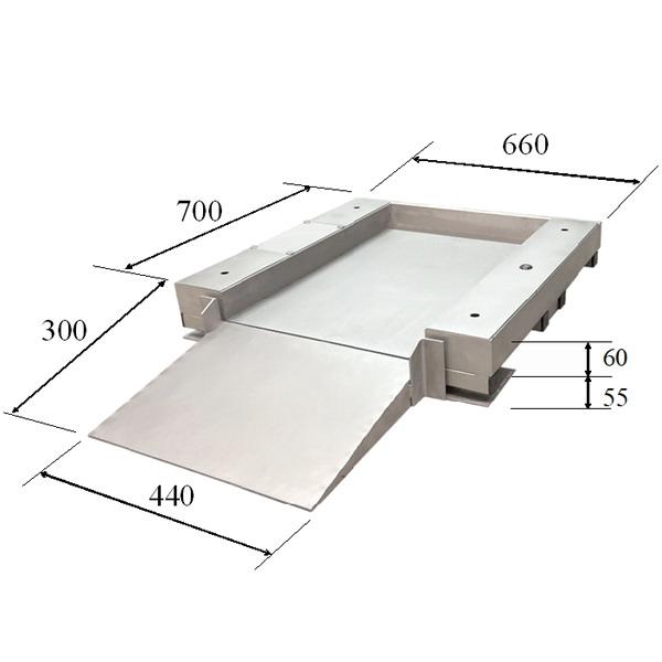 Podlahová nerezová nájezdová váha do 300kg o rozměru vážní plochy 440x700mm.