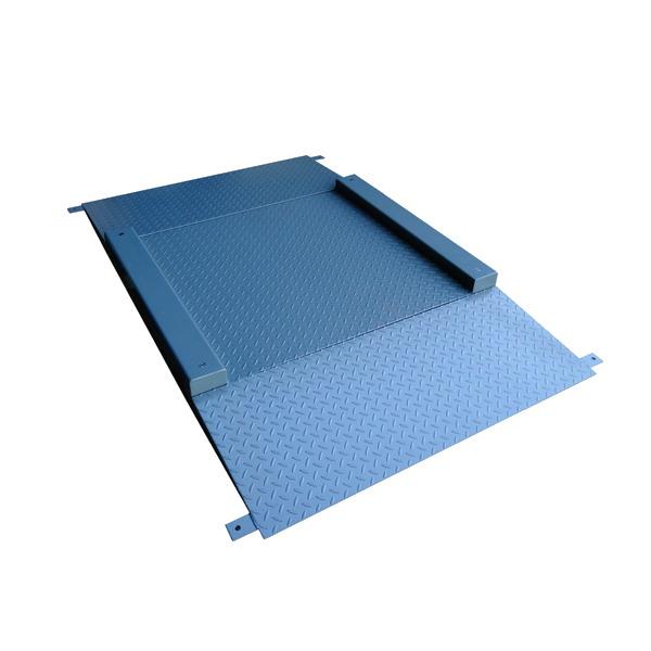 Váha podlahová nájezdová snížená se dvěma nájezdy do 2000kg o rozměru vážní plochy 1000x1000mm, tvořenou vrapovaným plechem, bez vážní jednotky.
