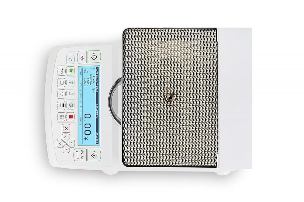 Teplota sušení: 160 °C, doba odběru vzorků: 1–180 s, maximální doba schnutí: 10 hodin, doba ohřevu komory na 100 °C: 3 minuty, ohřívač halogen.