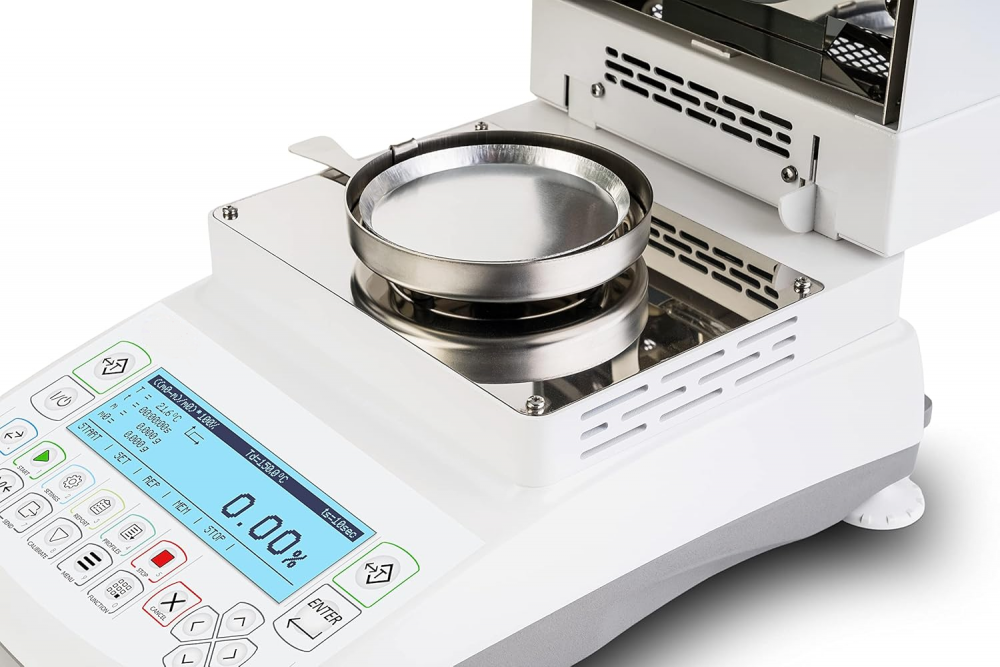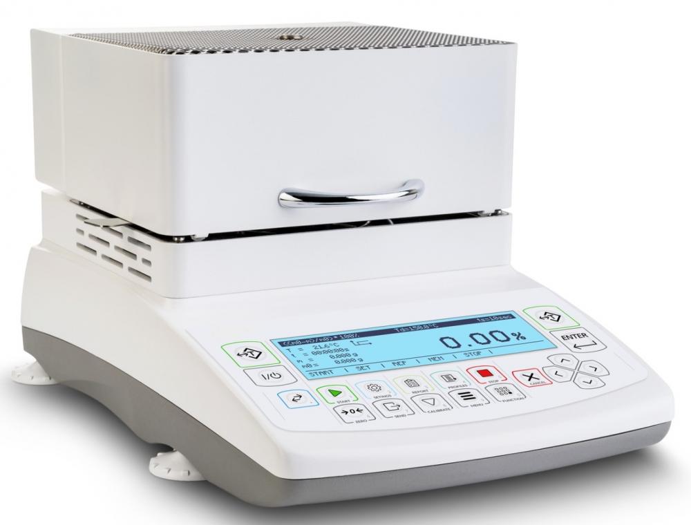 Teplota sušení: 160 °C, doba odběru vzorků: 1–180 s, maximální doba schnutí: 10 hodin, doba ohřevu komory na 100 °C: 3 minuty, ohřívač halogen.