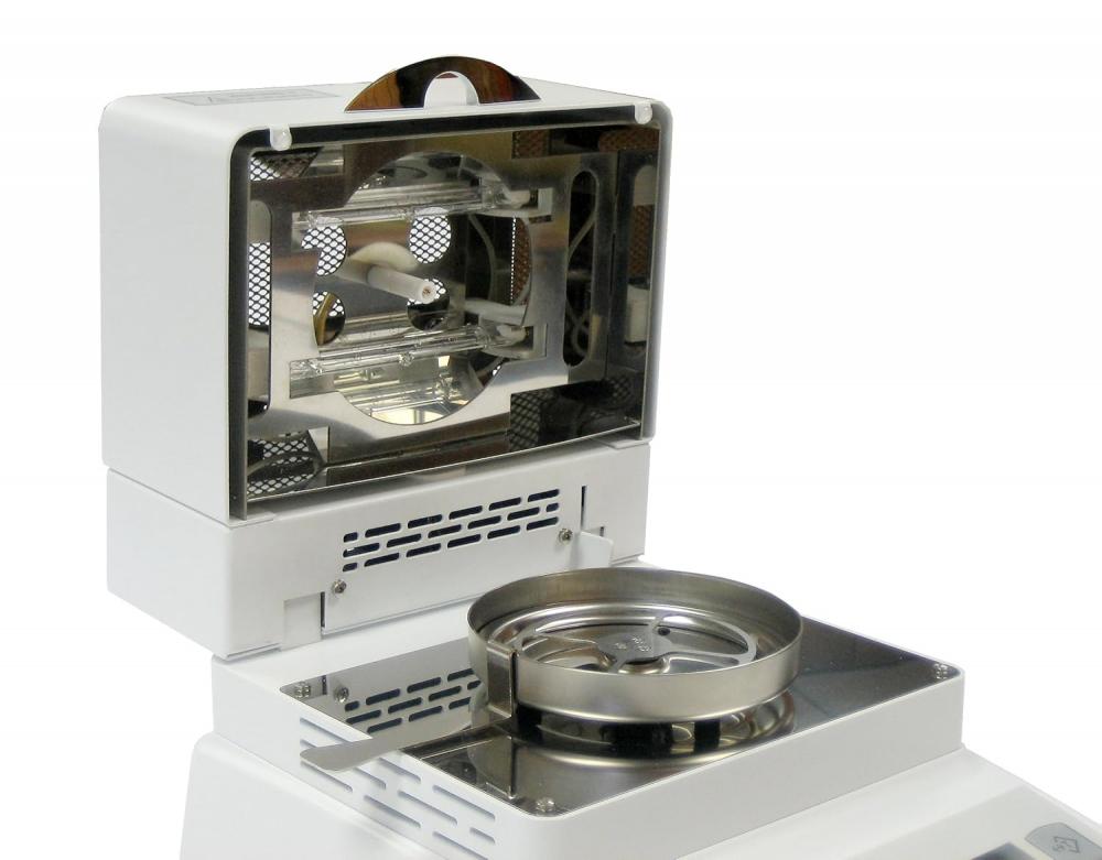 Teplota sušení: 160 °C, doba odběru vzorků: 1–180 s, maximální doba schnutí: 10 hodin, doba ohřevu komory na 100 °C: 3 minuty, ohřívač halogen.