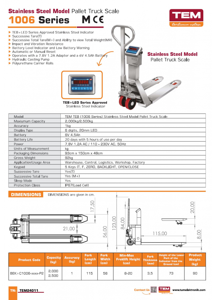 Nerezový paletový vozík TEM BT1TP je vyroben z vysoce kvalitní nerezové oceli, což zaručuje jeho robustnost, odolnost a snadné použití. Je k dispozici včetně ověření v ceně pro obchodní použití.
